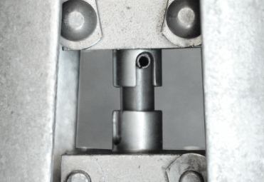 2. The shaft section must be fully closed. To close the shaft section, slide the peg (C) to shaft plate (B) and turn the widening handle (A) counterclockwise.