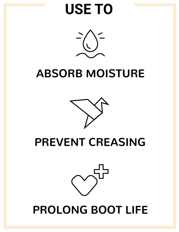 - A pair of aromatic cedar boot shaft shapers that prevent wrinkles from setting in your boots