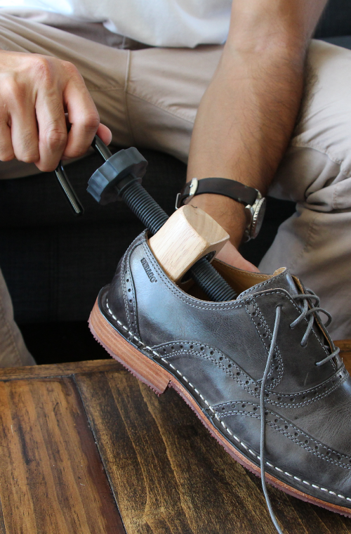 Made from solid rubber wood and a stretching mechanism that is reinforced with a steel-threaded rod, this shoe width and length stretcher is durable for almost any shoe.