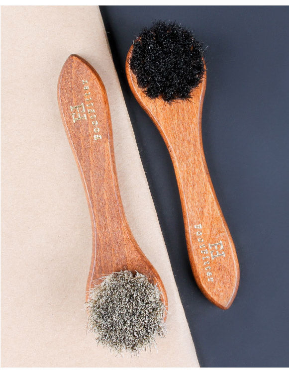 This luxurious shoe polish applicator brush is made of 100% genuine horsehair bristles that easily reach the seams and perforations that a cotton cloth is just unable to reach. Shoes that feature Brogueing or are highly-structured especially require the ability that only a quality shoe shine dauber can provide.