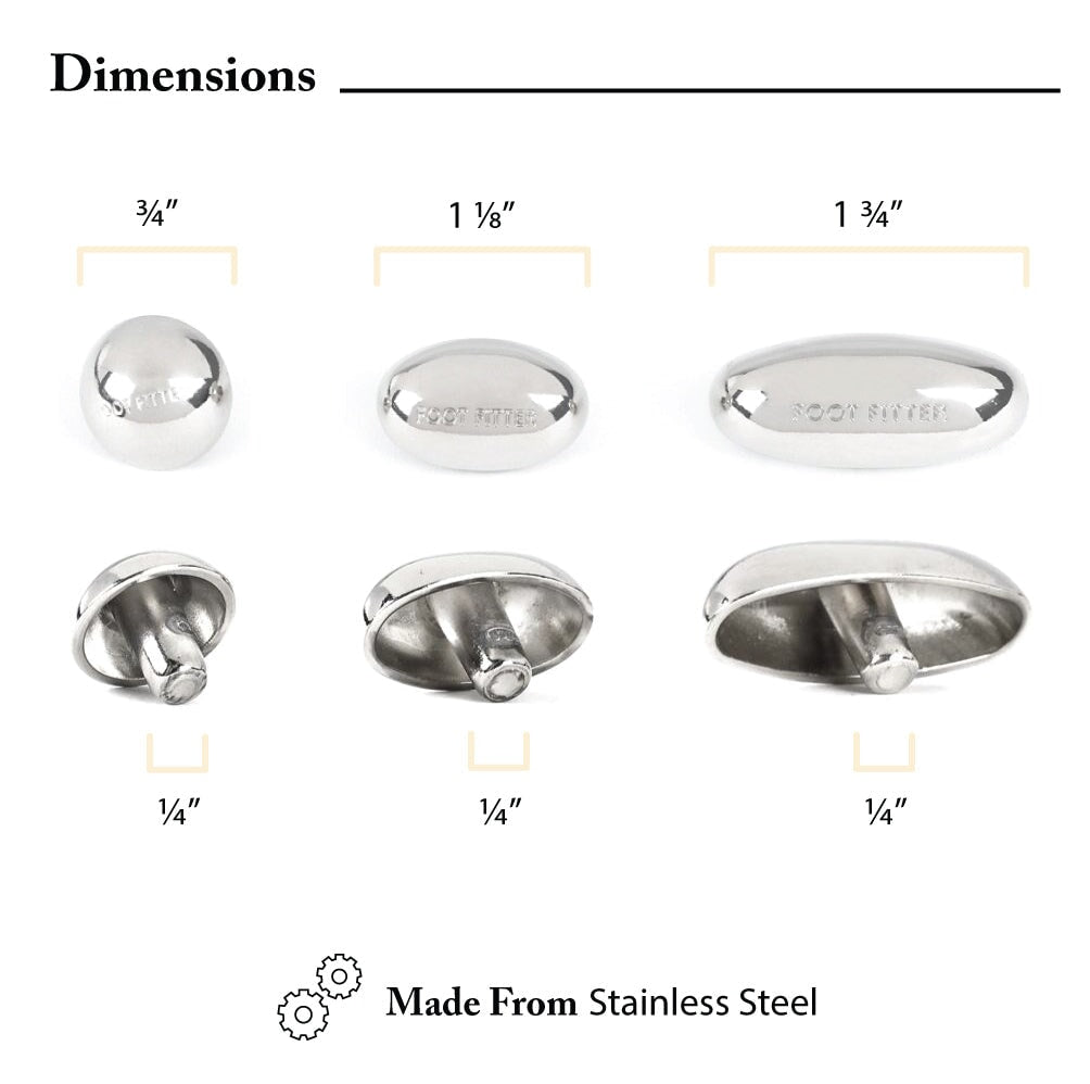 The FootFitter Metal Spot Stretching Plug Set presents a set of 3 individually sized stretch plugs that fit in all current model FootFitter brand stretchers. Simply insert a spot stretch plug into the predrilled holes on your stretchers toe block for extra relief where you need it most.
